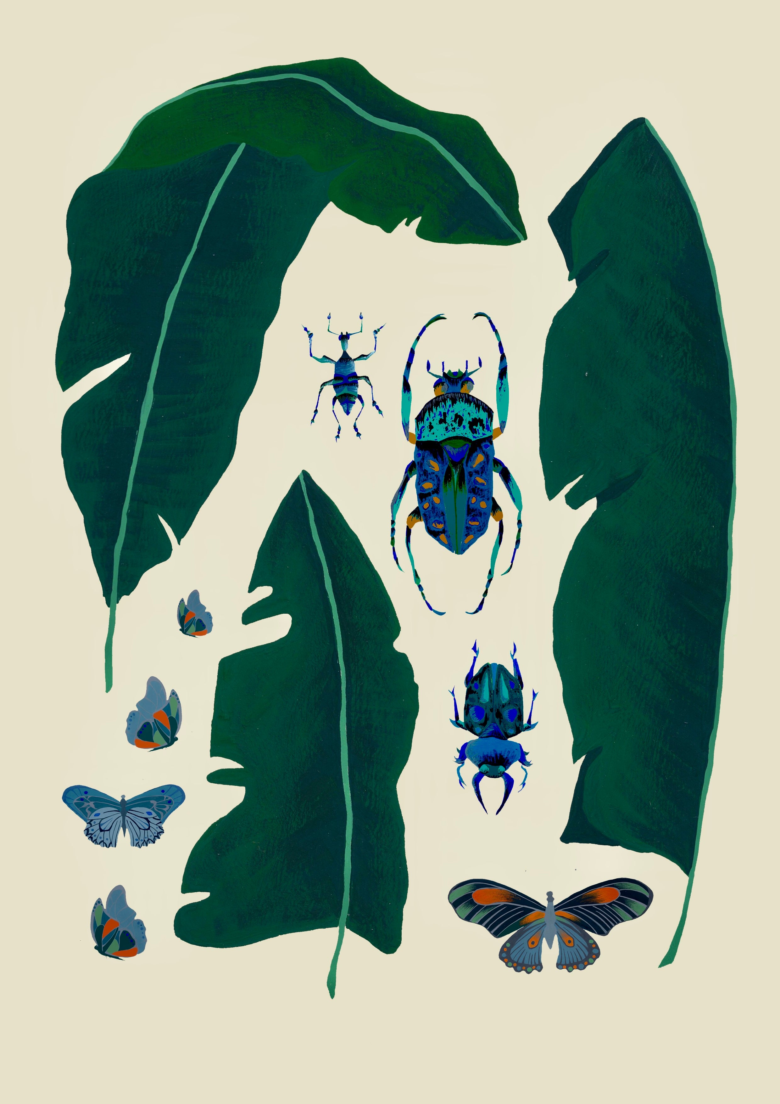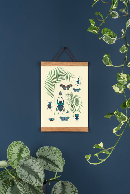 Insects and Palm Leaves A4 Art Print